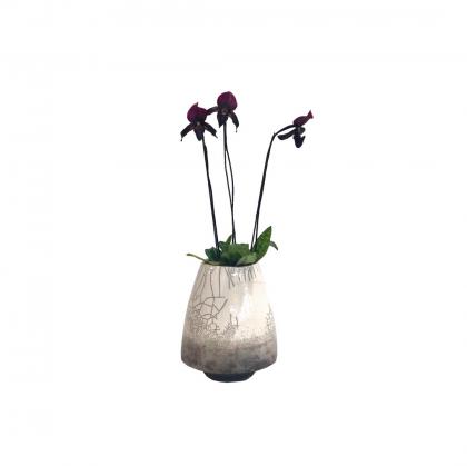 16世紀半ばに日本で開発された「楽焼」の製法を応用して作られています。釉薬を施釉した後、オーブンで高温に熱したポットをおがくずの中に入れ急激に冷却し、その温度差によって貫入(ヒビ)を生み出します。自然が作り出す美しい模様は、出来上がるたびに私たちに新たな喜びを与えてくれます。