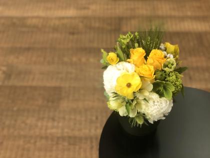 季節のお花を盛り込んだアレンジメントになります。仕入れ状況により種類が異なる事がございます。あらかじめご了承ください。