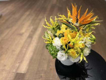 季節のお花を盛り込んだアレンジメントになります。仕入れ状況により種類が異なる事がございます。あらかじめご了承ください。